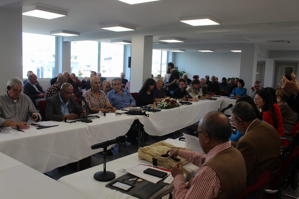 23 were invited, and 19 are participating. Representatives from the following countries have taken the floor and spoken: Greece, Vietnam, India, Cyprus, Colombia, Turkey, Czech Republic, Palestine, Italy, Chile, France, South Africa, Cuba, Spain, Germany, the USA, Romania, Sweden and Lebanon and of course, the General Secretary of the WFTU.