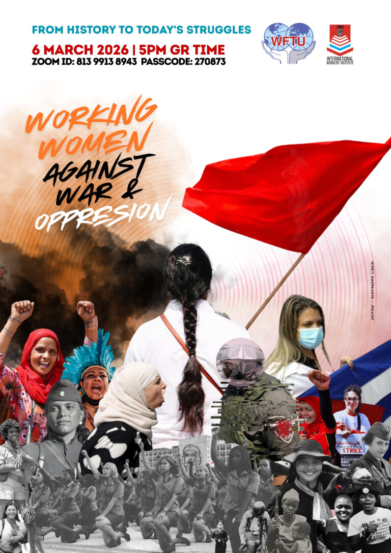 WFTU Women’s Commission and IWI (International Workers Institute) invite you to participate in the online event: From history to today’s struggle: working women against war